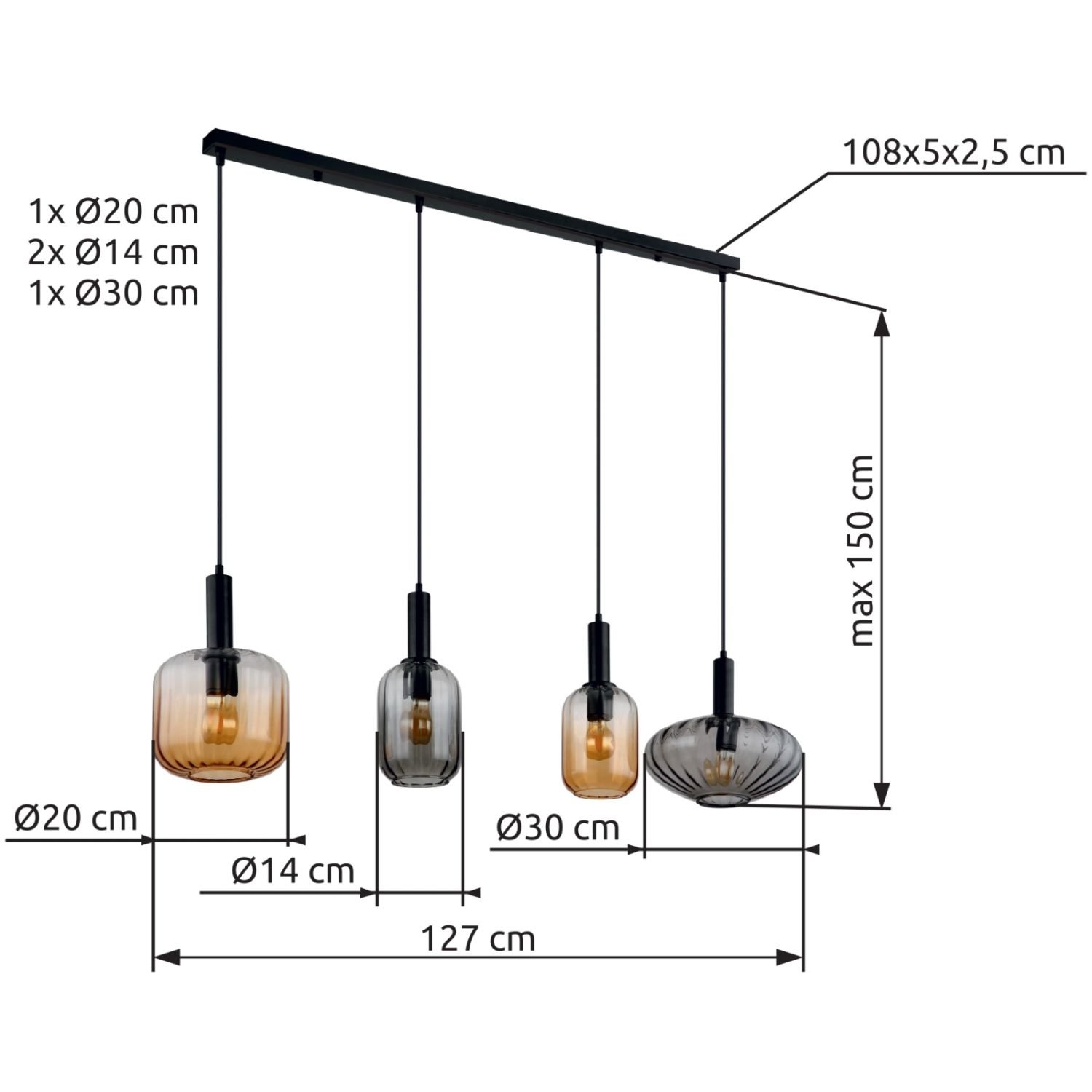 | Średnica/szerokość abażuru/klosza (cm): | 30|2x14|20 |