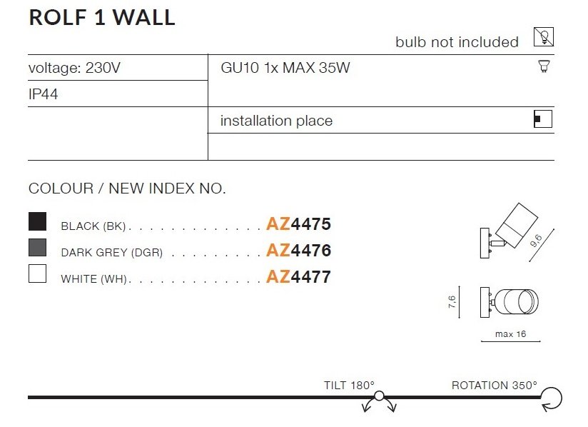 Lampa zewnętrzna reflektor spot ROLF 1 AZ4476 Azzardo