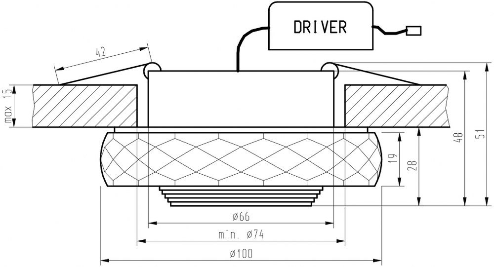 Bestsellerowa, szklana oprawa stropowa wyposażona w efektywny moduł LED COB, wbudowany w aluminiową obudowę . Szkło o dużej grubości zapewnia dodatkową dekorację i zapewnia niezapomniane efekty świetlne,. Przeznaczona do wbudowywania w sufity podwieszane i inne zabudowy, w komplecie dedykowany zasilacz elektroniczny i sprężyny montażowe.