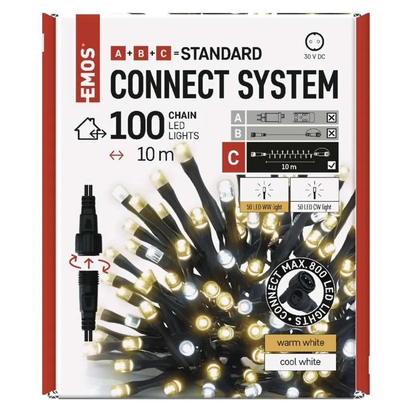 Światełka choinkowe łączone 100 LED 10m ciepłe + zimne IP44 D1AN01 EMOS